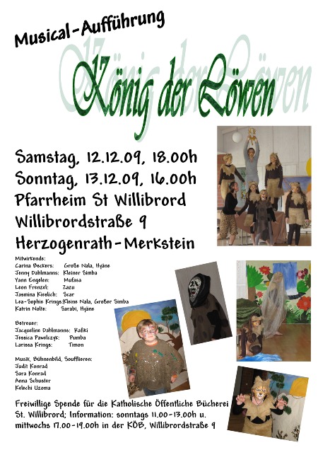 Aufführung "Der König der Löwen" am 12. + 13. Dezember im Pfarrheim St. Willibrord