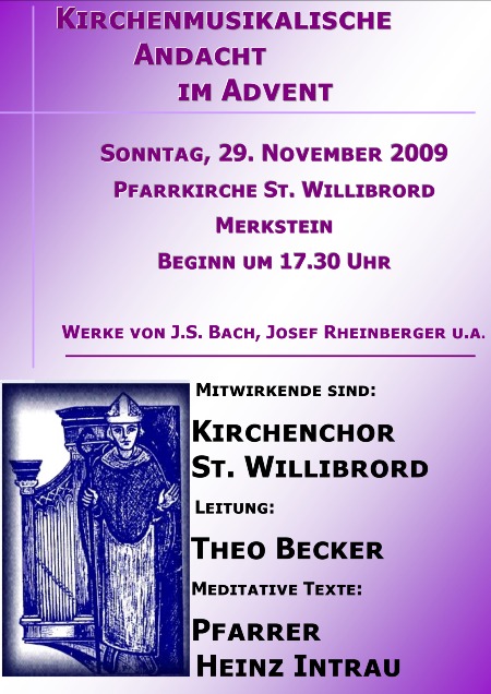 Eine "Kirchenmusikaliche Andacht im Advent" gestaltet durch den Kirchenchor St. Willibrord