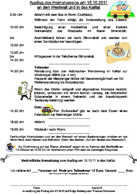 15.10. Samstag 09.00 h Ausflug ins Kalltal