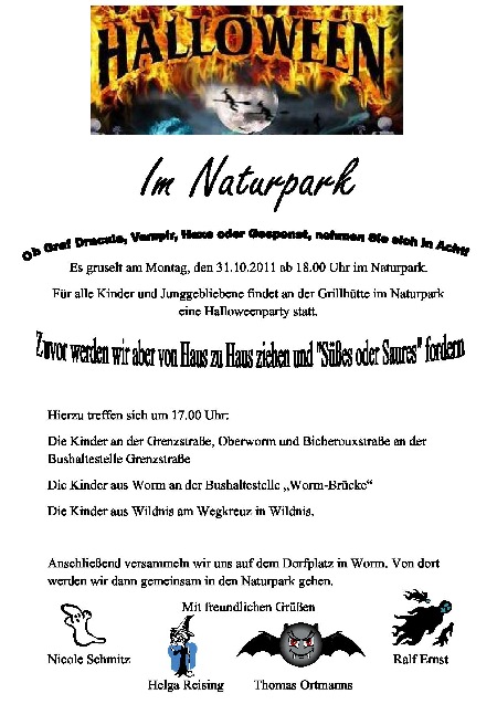31.10. Montag 17.00 h Halloween im Naturpark 18.00 h